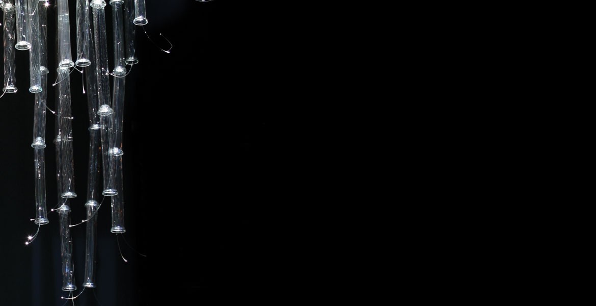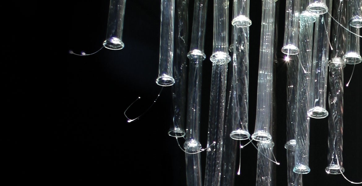 The Canneto lighting installation is an example of a project that is completely customizable. The chandelier is comprised of several mouth blown glass pieces made using various techniques and subtle color gradients.