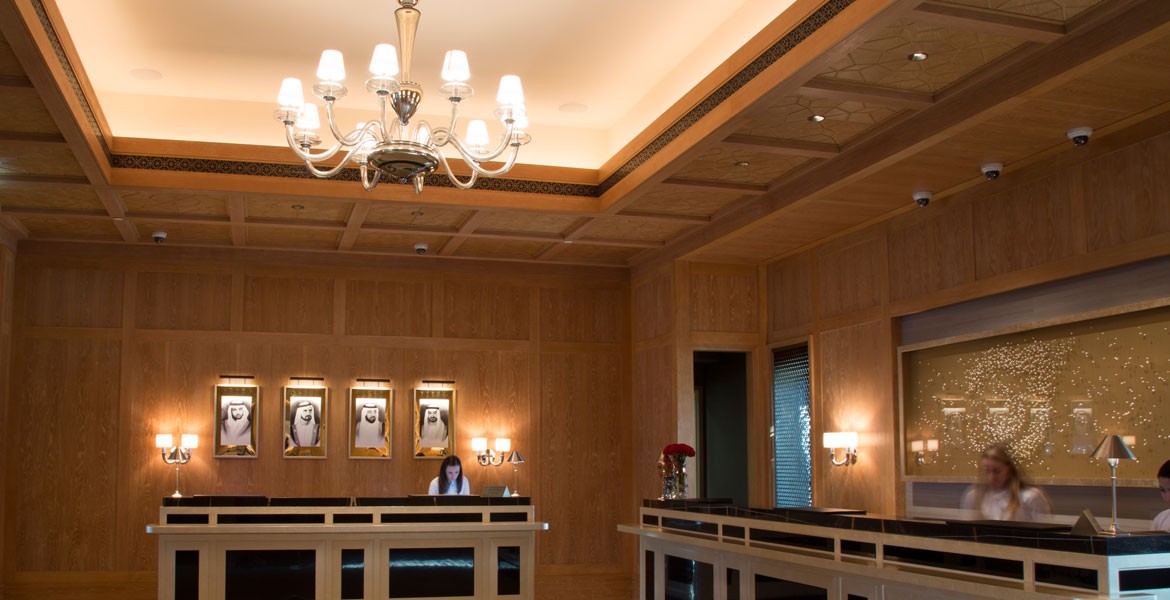 Murano glass chandeliers and sconces created for the lobby area of a resort in the United Arab Emirates.