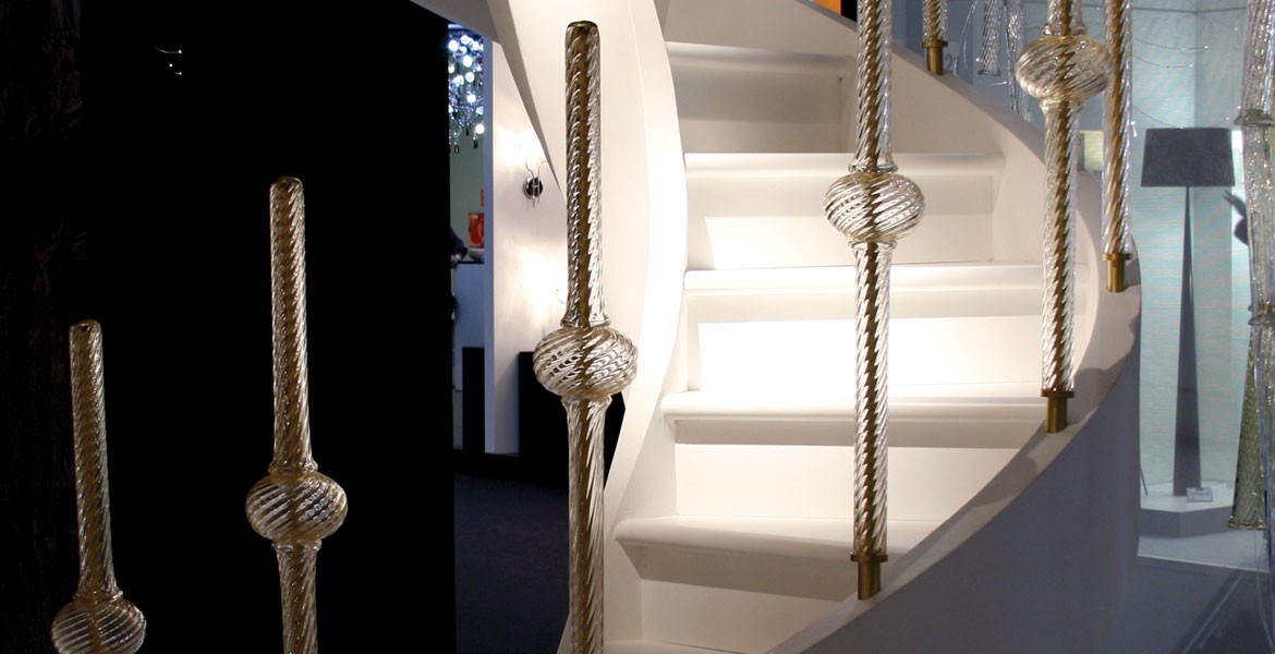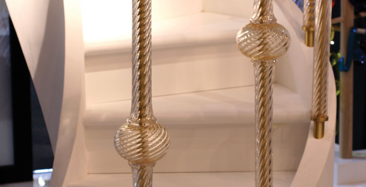Seguso glass banisters can instantly accent any interior with elegance and sophistication. Glass colors, shapes, styles and quantities are all specially made for each project.