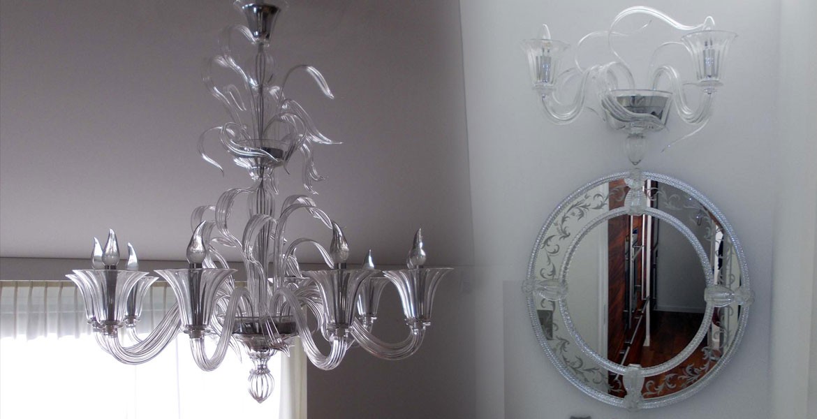 Venetian mirrors created by Seguso using authentic techniques for a private residence.