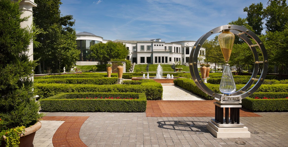An outdoor, Murano glass sculpture commissioned for a private residence in the United States. The sculpture’s theme, concept and design were created by Giampaolo Seguso. The name of the artwork is “Time is a Place.”