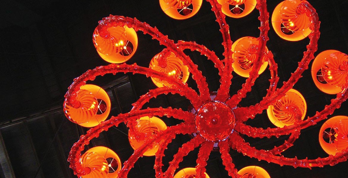 A series of custom chandeliers produced by Seguso for the Wynn resort in Macau.